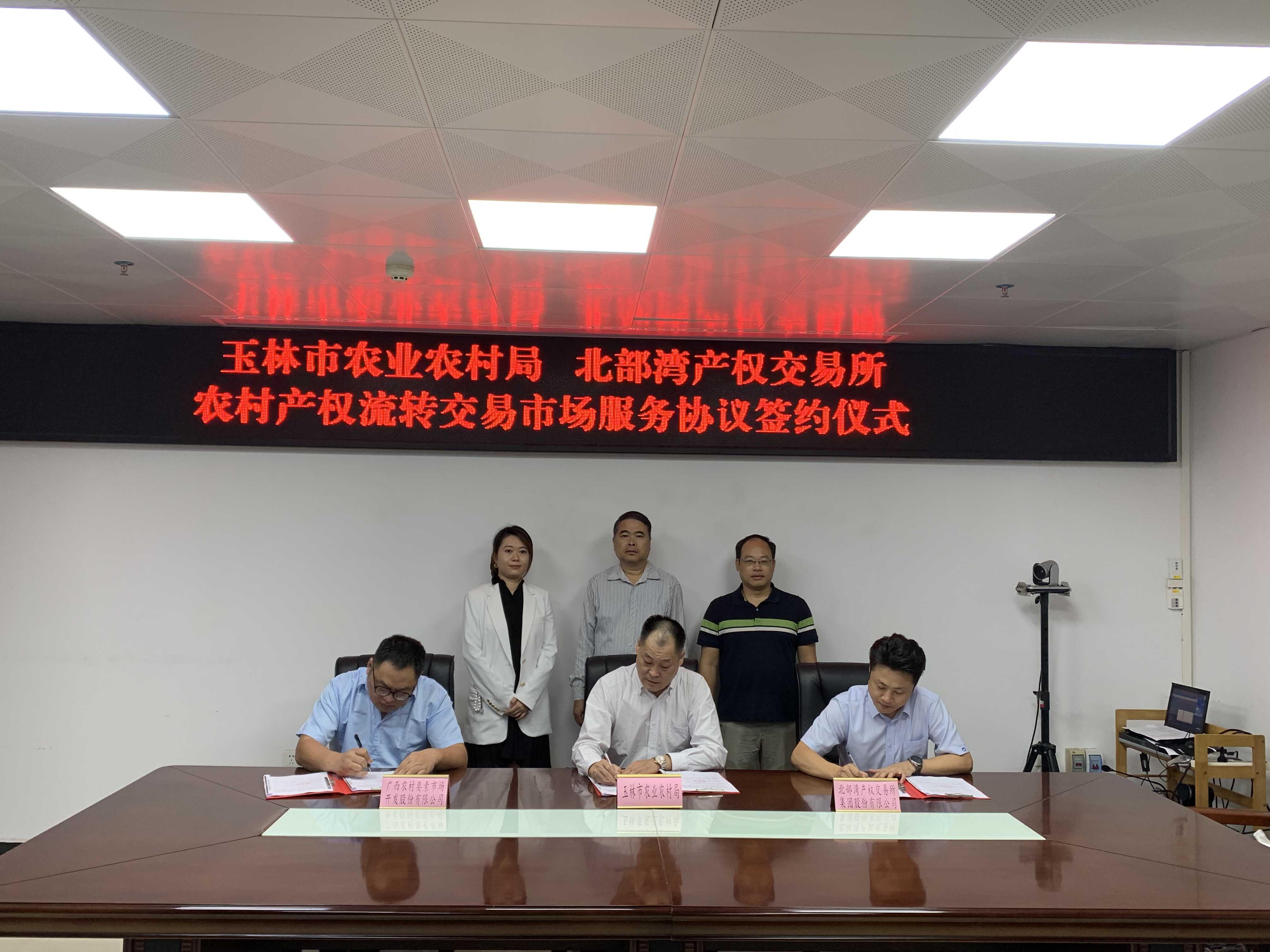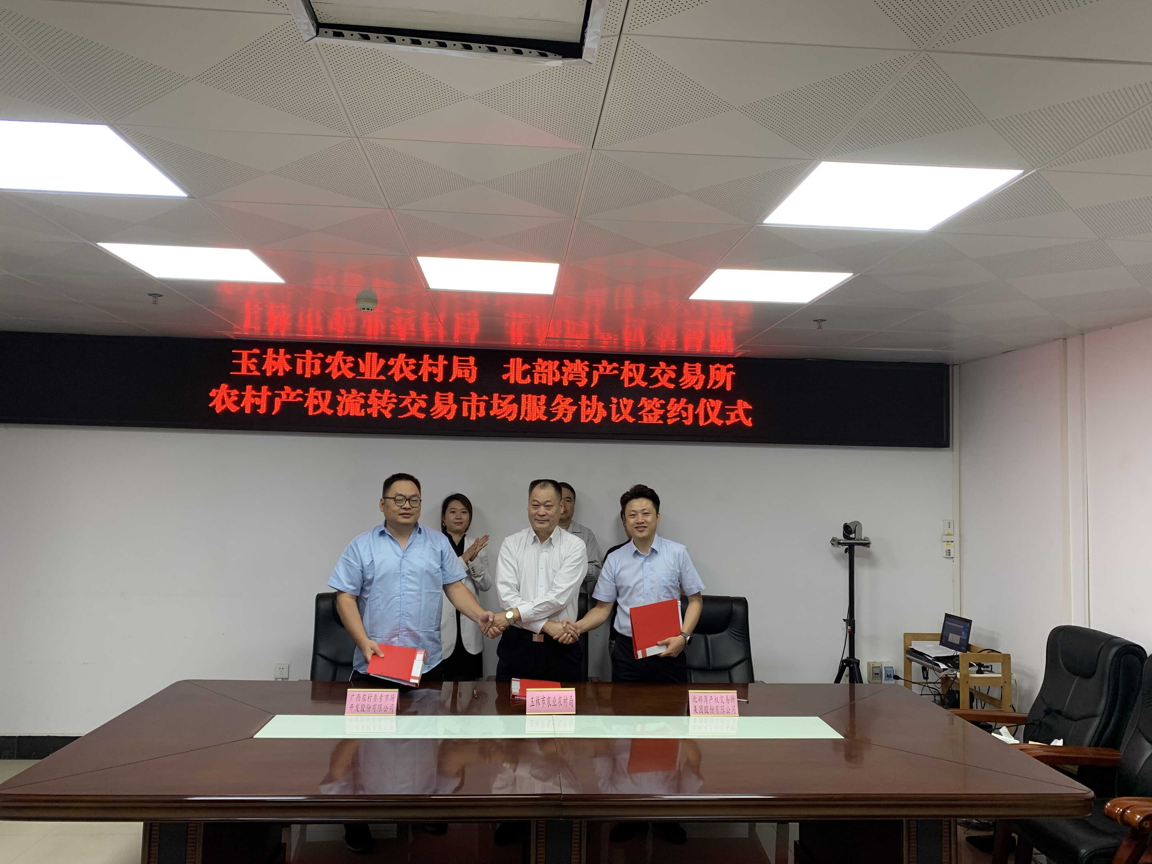 2023年10月11日上午,玉林市农村产权流转交易市场运营服务项目签约仪式举行,玉林市农业农村局党组成员、副局长董怀宝、北部湾产权交易所集团副总经理李清华、广西农村要素市场开发股份有限公司副总经理庞挺共同签署合作协议。