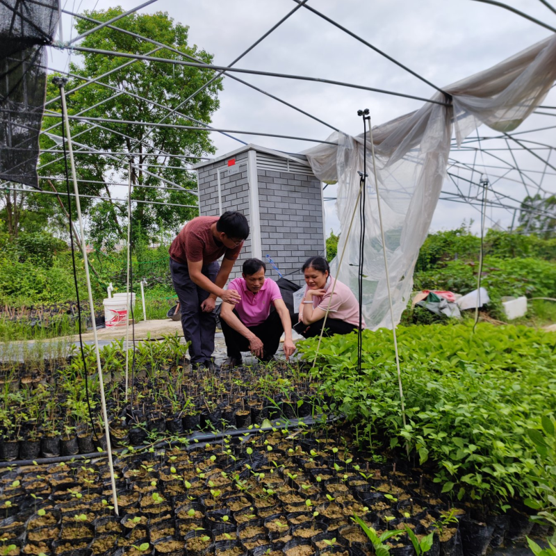 近期以来,玉林市频遇暴雨台风恶劣天气,农业生产遭受严重破坏。为了及时做好灾后重建,防灾减灾,恢复生产,广西科技特派员、玉林市微生物研究所所长卢玉文于5月18-21日带领团队成员秦延春、韦锦福、陈德荣深入兴业、北流等重灾区开展下沉科技服务,指导灾后重建工作。5月21日,卢玉文带领团队成员深入北流新圩河村中药材种苗繁育示范基地开展科技服务,通过详细了解灾情,针对基地规划重建、种苗种植技术、产品销售等方面提出可行性意见建议,得到业主欢迎。