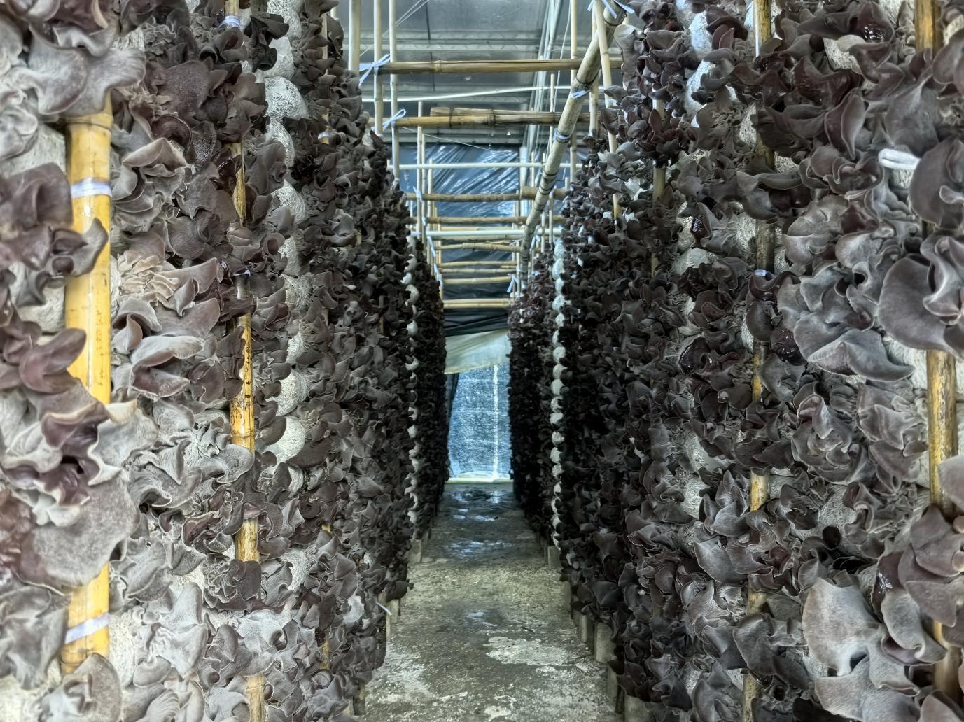 广西北流市健勇木耳栽培专业合作社生产示范基地的毛木耳长势喜人