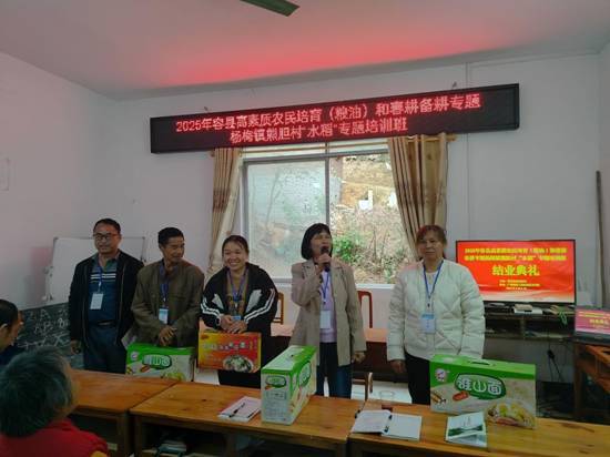 培训成果显著:结业典礼上,熊胆村学员代表分享学习体会:“过去春耕依赖传统经验,今年通过培训掌握了测土配方施肥和种植技能,每亩成本预计降低15%。培训班还评选出5名“优秀学员”,并为其颁发奖品,激励学员将学到的知识转化为生产力。