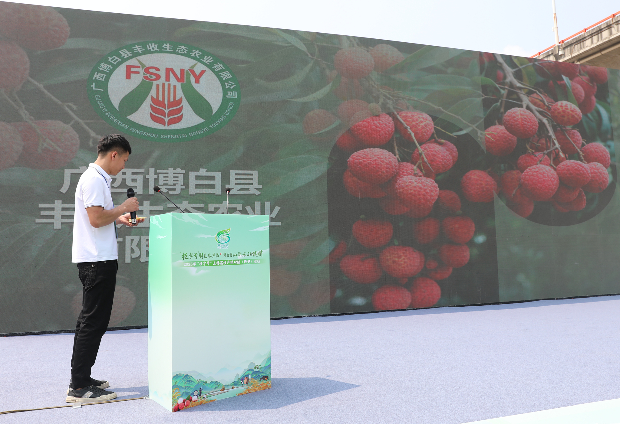 北流市新型经营主体服务中心、北流市大同果业有限公司、广西博白县丰收生态农业有限公司等企业代表依次上台做产品推介,让现场嘉宾深入了解玉林荔枝的独特魅力与卓越品质。