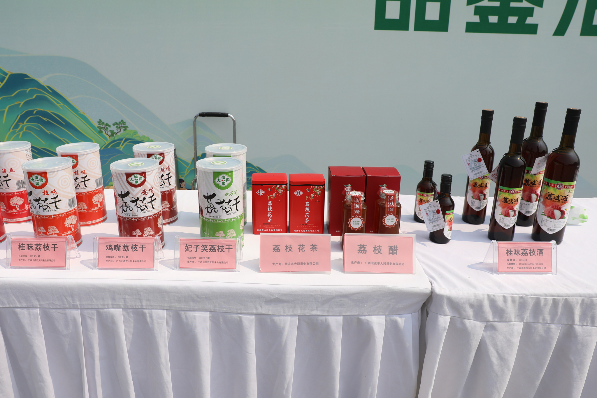 荔枝酒、荔枝干、荔枝醋、荔枝花茶等精深加工产品