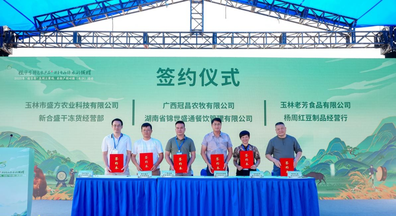 6月25日,由广西壮族自治区农业农村厅、玉林市农业农村局指导,玉林市玉州区人民政府、玉州区农业农村局主办的2025年“桂字号”玉州三黄鸡、米粉产销对接(长沙)活动在湖南省长沙市成功举行。
