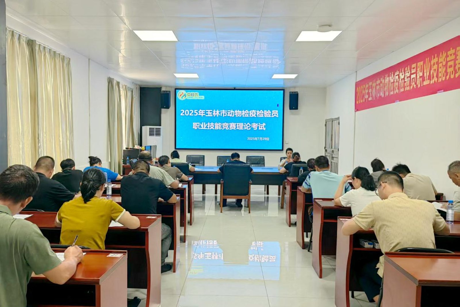 为加快提升玉林市动物检疫队伍的专业技能水平,筑牢畜产品公共安全防线,2025年7月29日, 由玉林市农业农村局、玉林市总工会共同主办,玉林市动物检疫站承办,容县农业农村局、广西容县中桂农实业有限公司协办的2025年玉林市动物检疫检验员职业技能竞赛在广西容县中桂农实业有限公司举办。