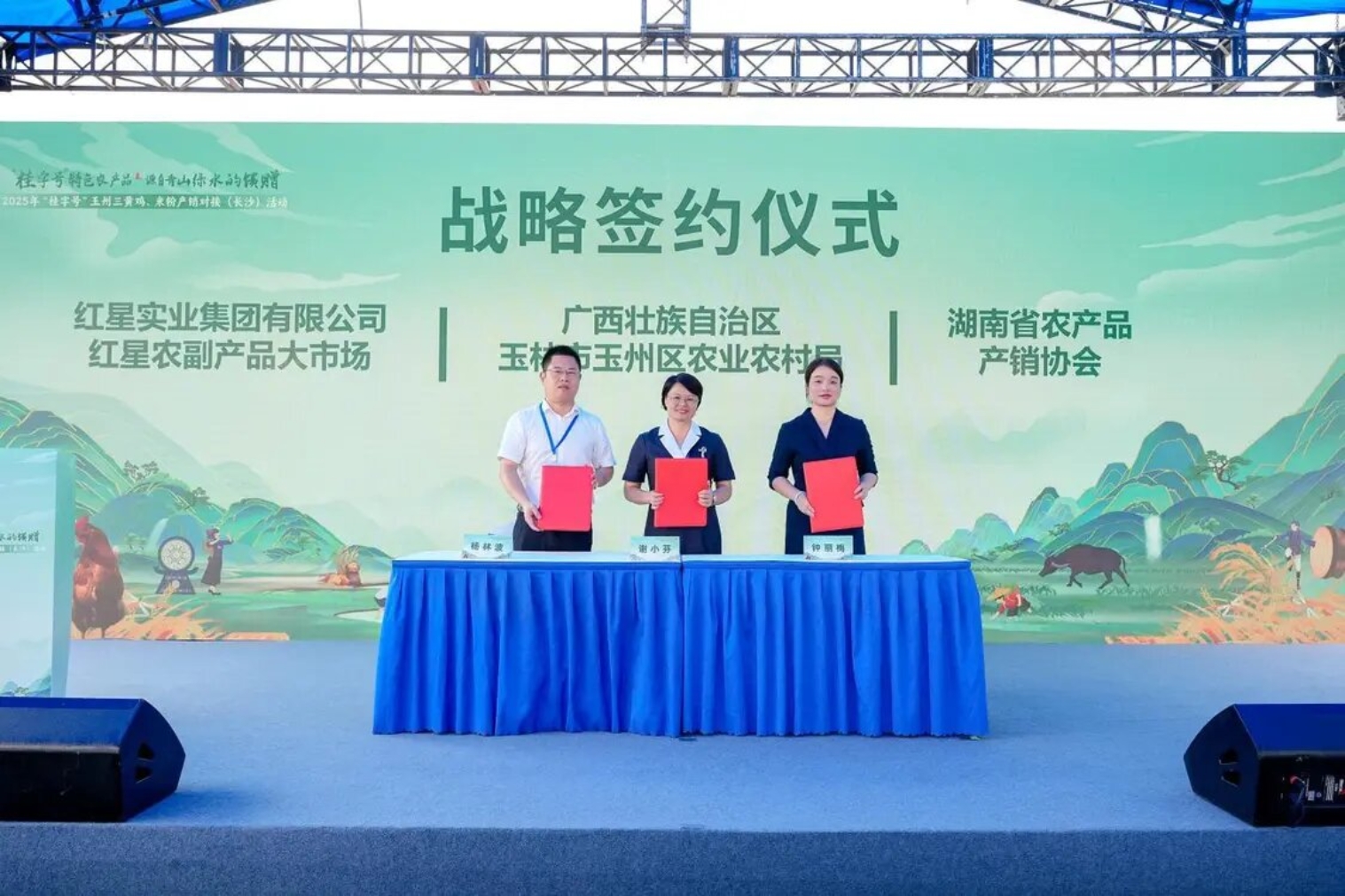 玉林市玉州区农业农村局、红星实业集团有限公司红星农副产品大市场、湖南省农产品产销协会签订战略合作协议。