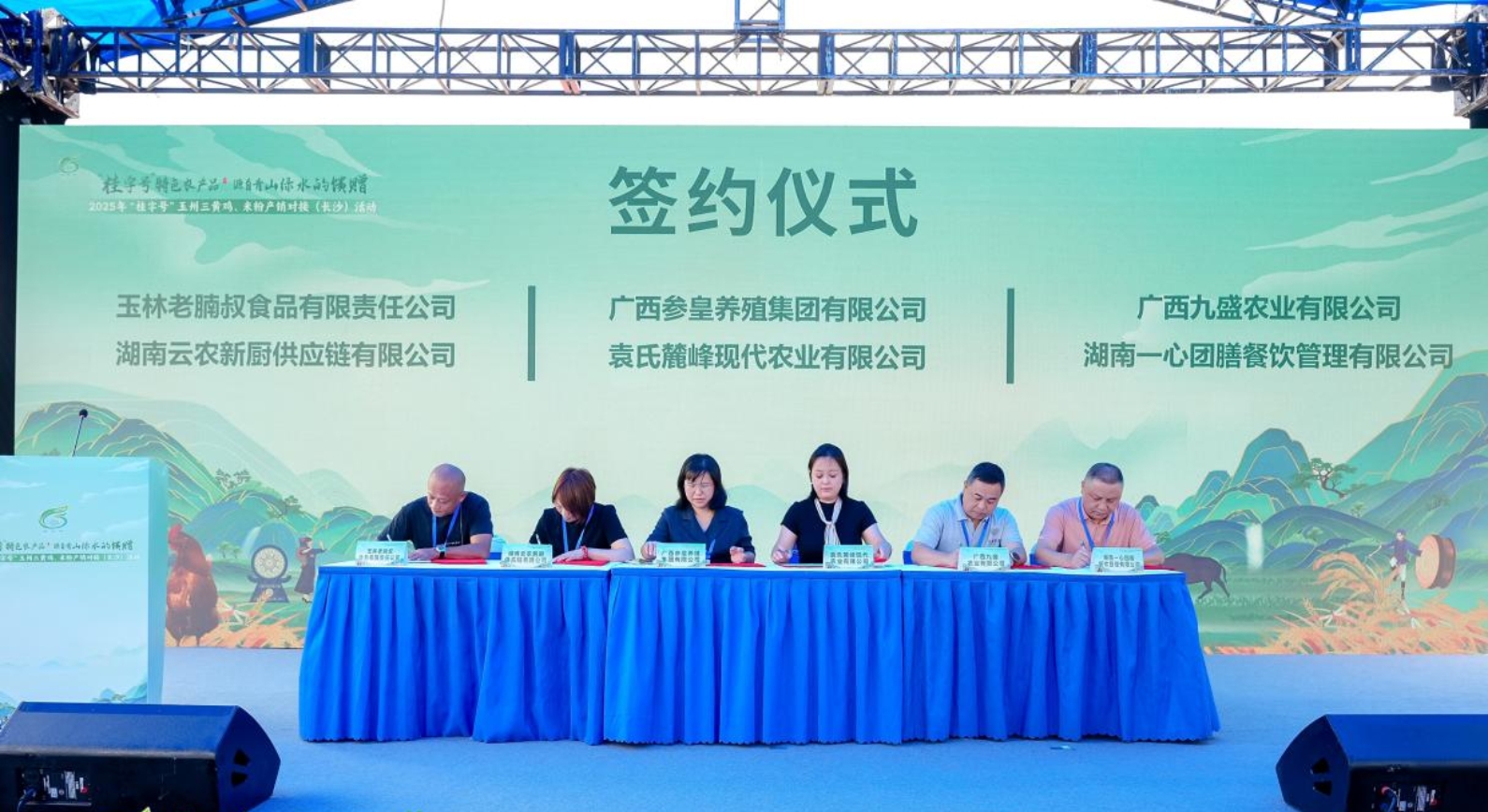 6月25日,由广西壮族自治区农业农村厅、玉林市农业农村局指导,玉林市玉州区人民政府、玉州区农业农村局主办的2025年“桂字号”玉州三黄鸡、米粉产销对接(长沙)活动在湖南省长沙市成功举行。