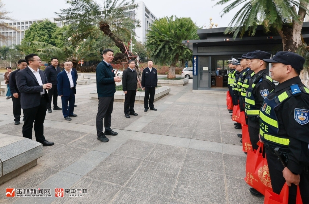 “大家辛苦了,给大家拜年了。”王琛来到市公安局玉州分局双拥路街面警务室,看望慰问值班值守的民警辅警、保安保洁人员,为他们送上节日问候,感谢他们的辛勤付出,希望民警辅警进一步提高见警率,依法打击违法犯罪行为,加强道路交通安全管理,全力守护一方平安;希望保安保洁人员以饱满的精神状态投入到工作中,扎实完成好各项工作任务,为市民营造良好的城市环境。