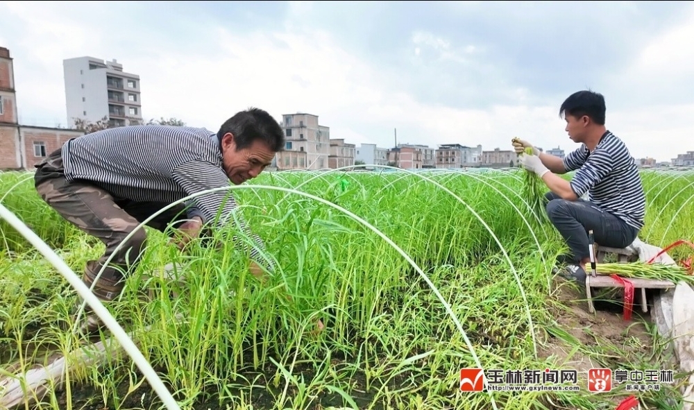博白镇茂江村村民抢抓有利时节,纷纷采摘蕹菜。